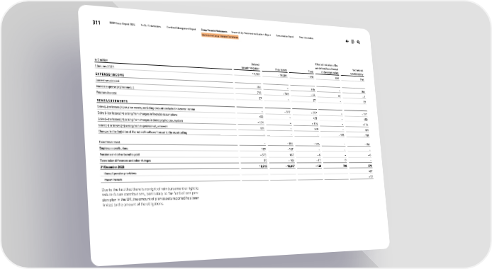 311 BMW Group Report 2024 To Our Stakeholders Combined Management Report Group Financial Statements Responsibility Statement and Auditor’s Report Remuneration Report Other Information Notes to the Group Financial Statements in € million Defined benefit obligation Plan assets Total Effect of limitation of the net defined benefit asset to the asset ceiling Net defined benefit liability 1 January 2023 17,685 – 18,383 – 698 894 196 E X P E N S E / I N C O M E Current service cost 366 – 366 – 366 Interest expense (+)/income (–) 704 – 748 – 44 43 – 1 Past service cost 27 – 27 – 27 R E M E A S U R E M E N T S Gains (–) or losses (+) on plan assets, excluding amounts included in interest income – – 317 – 317 – – 317 Gains (–) or losses (+) arising from changes in financial assumptions 458 – 458 – 458 Gains (–) or losses (+) arising from changes in demographic assumptions – 174 – – 174 – – 174 Gains (–) or losses (+) arising from experience adjustments 329 – 329 – 329 Changes in the limitation of the net defined benefit asset to the asset ceiling – – – – 155 – 155 Transfers to fund – – 353 – 353 – – 353 Employee contributions 107 – 107 – – – Pensions and other benefits paid – 673 667 – 6 – – 6 Translation differences and other changes 89 – 106 – 17 17 – 31 December 2023 18,918 – 19,347 – 429 799 370 thereof pension provisions 427 thereof assets – 57 Due to the fact that there is no right of reimbursement or right to reduce future contributions, particularly to the fund of one pen- sion plan in the UK, the amount of plan assets reported has been limited to the amount of the obligations.