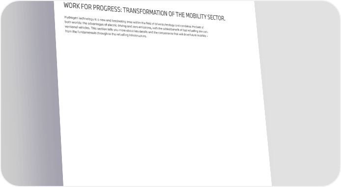 BMW iX5 Hydrogen pilot fleet worldwide, the BMW Group is now preparing for series production of vehicles with hydrogen drive systems in 2028. Hydrogen technology is a new and fascinating area within the field of drive technology and combines the best of both worlds: the advantages of electric driving and zero emissions, with the added benefit of fast refuelling like con- ventional vehicles. This section tells you more about key details and the components that will drive future mobility – from the fundamentals through to the refuelling infrastructure. WORK FOR PROGRESS: TRANSFORMATION OF THE MOBILITY SECTOR.