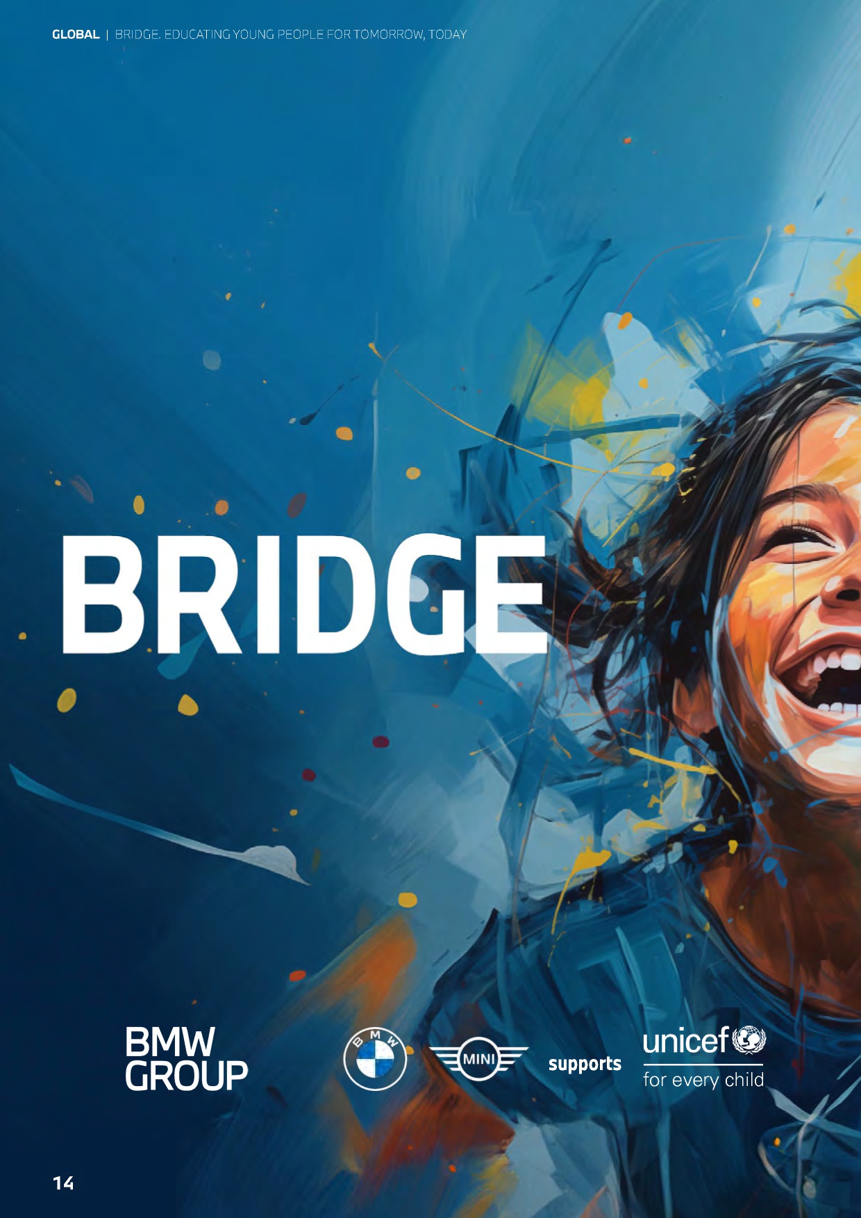 Driving Social Impact: BMW Group Corporate Citizenship Page 13 Page 1514 for every child GLOBAL | BRIDGE. EDUCATING YOUNG PEOPLE FOR TOMORROW, TODAY 14 supports