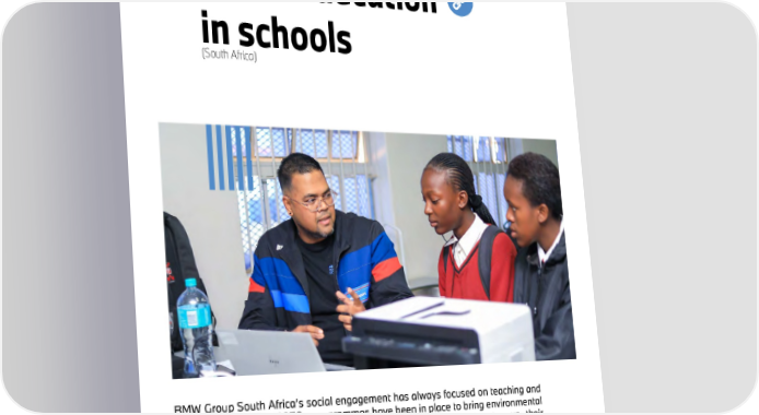 34 BMW Group South Africa’s social engagement has always focused on teaching and education. Since the 1970s, programmes have been in place to bring environmental education to schools, encouraging children and adolescents to step up their environmental awareness. There is now a particular focus on education in the STEM subjects of science, technology, engineering and mathematics. STEM education in schools (South Africa) LOCAL | EDUCATION FOR FUTURE GENERATIONS