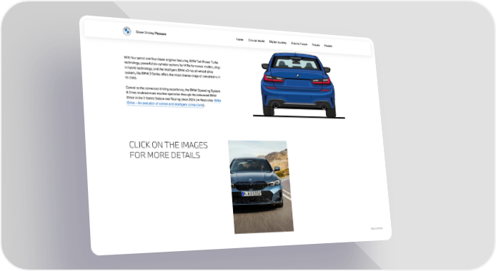 With four petrol and four diesel engines featuring BMW TwinPower Turbo technology, powerful six-cylinder options for M Performance models, plug- in hybrid technology, and the intelligent BMW xDrive all-wheel-drive system, the BMW 3 Series offers the most diverse range of powertrains in its class. Central to the connected driving experience, the BMW Operating System 8.5 has enabled more intuitive operation through the enhanced BMW iDrive in the 3 Series Saloon and Touring since 2024 (➜ Read also: BMW iDrive – An evolution of control and intelligent connectivity). CLICK ON THE IMAGES FOR MORE DETAILS Next article Sheer Driving Pleasure Home Circular World Digital Journey Electric Future Freude Models