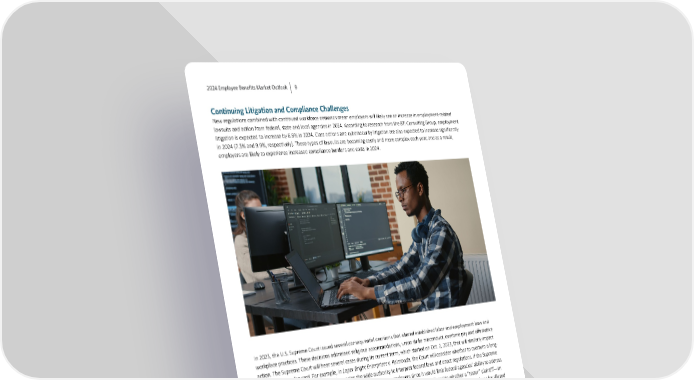 2024 Employee Benefits Market Outlook 9 Continuing Litigation and Compliance Challenges New regula琀椀ons combined with con琀椀nued workforce demands mean employers will likely see an increase in employment-related lawsuits and ac琀椀on from federal, state and local agencies in 2024. According to research from the BTI Consul琀椀ng Group, employment li琀椀ga琀椀on is expected to increase by 6.8% in 2024. Class ac琀椀ons and cybersecurity li琀椀ga琀椀on are also expected to increase signi昀椀cantly in 2024 (7.5% and 9.9%, respec琀椀vely). These types of lawsuits are becoming costly and more complex each year, and as a result, employers are likely to experience increased compliance burdens and costs in 2024. In 2023, the U.S. Supreme Court issued several consequen琀椀al decisions that altered established labor and employment laws and workplace prac琀椀ces. These decisions addressed religious accommoda琀椀ons, union strike misconduct, over琀椀me pay and a昀케rma琀椀ve ac琀椀on. The Supreme Court will hear several cases during its current term, which started on Oct. 2, 2023, that will similarly impact employers going forward. For example, in Loper Bright Enterprises v. Raimondo, the Court will consider whether to overturn a long- standing precedent that allows federal agencies the wide authority to interpret federal laws and enact regula琀椀ons. If the Supreme Court overturns this doctrine, it could have a signi昀椀cant impact on employers since it would limit federal agencies’ ability to address issues such as labor condi琀椀ons and public health. In Acheson Hotels v. Laufer, the Court will decide whether a “tester” plain琀椀昀昀—an individual who goes from business to business looking for a reason to ini琀椀ate a lawsuit—has standing to sue an employer for alleged viola琀椀ons under the Americans with Disabili琀椀es Act (ADA) when the tester had no inten琀椀on of patronizing the business. This case is noteworthy because the ADA doesn’t require claimants to no琀椀fy an organiza琀椀on of alleged viola琀椀ons or provide them with an opportunity to address and remedy the viola琀椀ons before 昀椀ling a lawsuit. As a result, businesses can be caught o昀昀 guard and face costly discrimina琀椀on lawsuits. Further, in Muldrow v. St. Louis, the Supreme Court will decide whether Title VII of the Civil Rights Act (Title VII) prohibits discrimina琀椀on in lateral transfer decisions when the transfer did not result in a signi昀椀cant disadvantage to the employee. In this case, an employee was forced to accept a lateral transfer that provided the same pay and bene昀椀ts. The employee claimed that the transfer was based on illegal gender bias. Several federal courts have held that a forced lateral transfer is an adverse employment ac琀椀on under Title VII, even if an employee fails to show that the move caused any addi琀椀onal injury. This case is expected to provide employers with clarity on what is considered an adverse employment ac琀椀on under Title VII. In addi琀椀on to these Supreme Court cases, many developments may impact employer health care and employee bene昀椀ts-related obliga琀椀ons in 2024. For example, in March 2023, the U.S. District Court for the Northern District of Texas struck down a key component of the A昀昀ordable Care Act’s (ACA) preven琀椀ve care mandate as uncons琀椀tu琀椀onal. The ACA requires health insurance plans to cover certain preven琀椀ve services without cost sharing. When Congress dra昀琀ed the law, it failed to specify the covered services and instead delegated the task to the U.S. Preven琀椀ve Services Task Force, Advisory Commi琀琀ee on Immuniza琀椀on Prac琀椀ces, and the Health