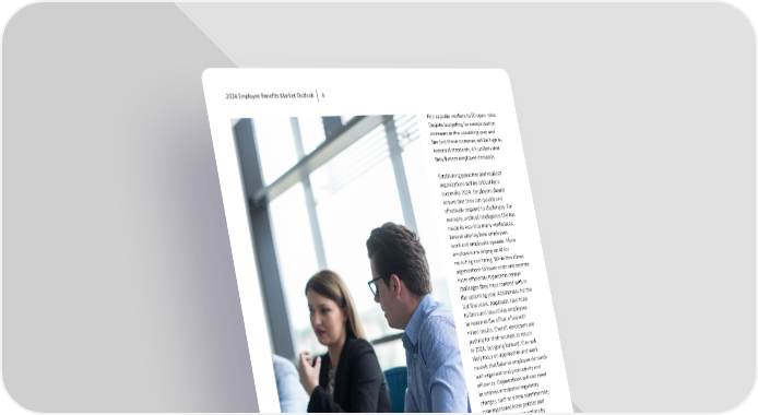 2024 Employee Benefits Market Outlook 4 昀椀nd capable workers to 昀椀ll open roles. Despite budge琀椀ng for compensa琀椀on increases in the upcoming year and the fact these increases will be high by historical standards, it’s unlikely that they’ll meet employee demands. Establishing proac琀椀ve and resilient organiza琀椀ons will be cri琀椀cal for a successful 2024. Employers should ensure that they can quickly and e昀昀ec琀椀vely respond to challenges. For example, ar琀椀昀椀cial intelligence (AI) has made its way into many workplaces, forever altering how employees work and employers operate. More employers are relying on AI for recrui琀椀ng and hiring. While this allows organiza琀椀ons to lower costs and operate more e昀케ciently, it presents certain challenges they must contend with in the upcoming year. Addi琀椀onally, for the last few years, employers have tried to force and incen琀椀vize employees to return to the o昀케ce, o昀琀en with mixed results. Overall, employers are pushing for their workers to return in 2024, but going forward, they will likely focus on approaches and work models that balance employee demands with organiza琀椀onal produc琀椀vity and e昀케ciency. Organiza琀椀ons will also need to address an琀椀cipated regulatory changes, such as a new over琀椀me rule, state-mandated leave policies and increased enforcement ac琀椀ons by federal agencies. As employers read the Market Outlook, they should consider which trends they may be suscep琀椀ble to in the upcoming year. Then, reach out to us to discuss the next steps and request valuable resources to help evaluate poten琀椀al solu琀椀ons and raise the challenges 2024 may bring. Together, we can meet the challenges and iden琀椀昀椀ed opportuni琀椀es presented in 2024.